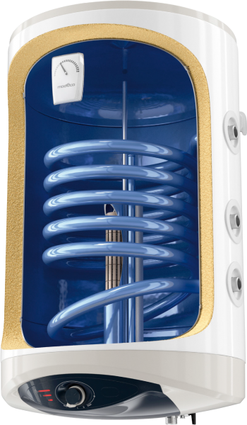 Kombinovaný zvislý bojler s rúrkovým výmenníkom a s pravým pripojením na systém vykurovania. Suché keramické ohrevné teleso zabezpečuje maximálnu ochranu proti vodnému kameňu a dlhú životnosť.